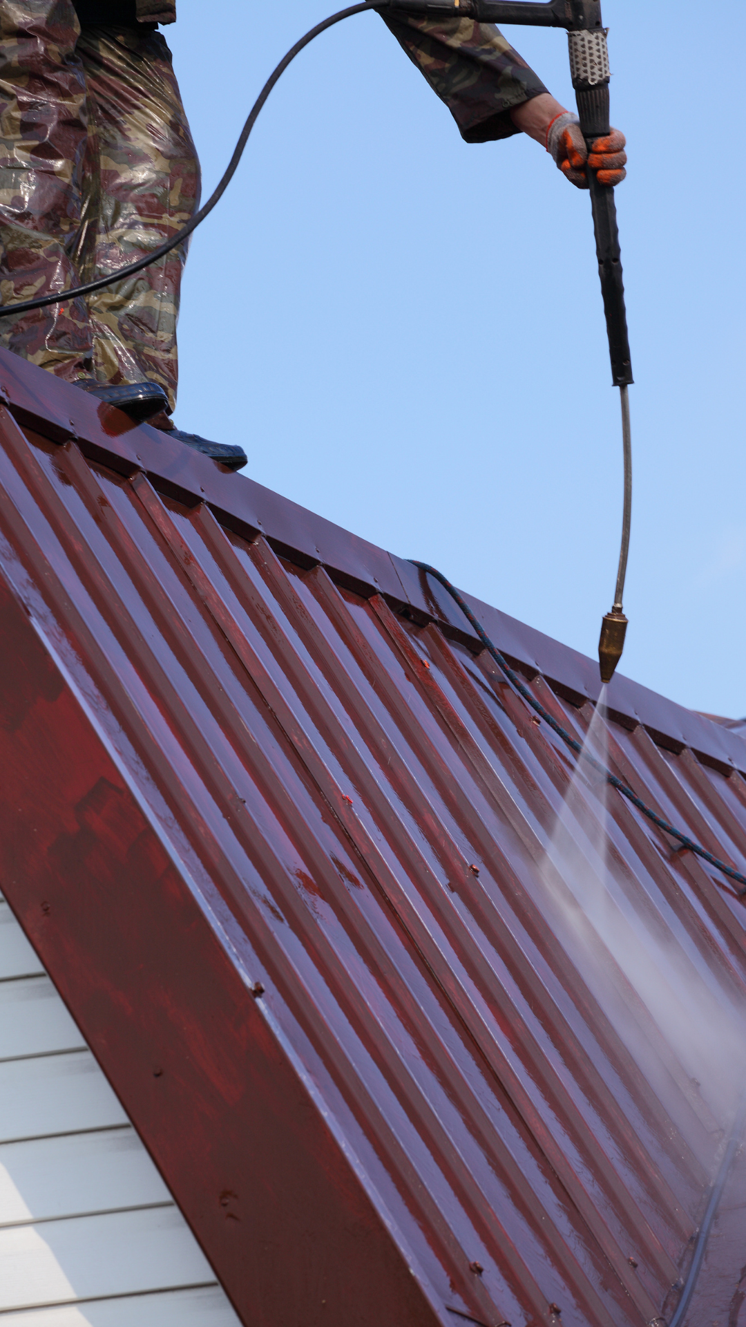 Skånsom vask for å fjerne mose, alger og skitt uten å skade taksteinene. Dette sikrer at taket er rent og klart for impregnering og maling.